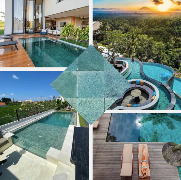 Green Sukabumi stone or Bali pool tile, is a popular natural stone in Indonesia. It is commonly used in luxury swimming pool tiles at five-star resorts worldwide. Green Sukabumi stone remains the top choice for discerning architects, designers, and homeowners globally.